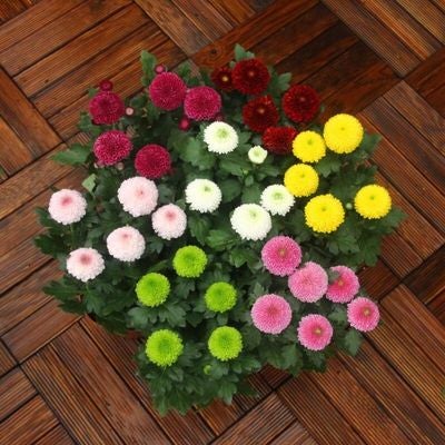 Description:Ping-pong chrysanthemum is a plant in the Asteraceae family. It is named because it looks like a ping-pong ball. It has four colors: yellow, green, white, and red. It is often used as fresh cut flowers and is originally produced in Japan. The ping-pong chrysanthemum has a cute and cute shape, and it has a long shelf life, which represents a long and complete love.
