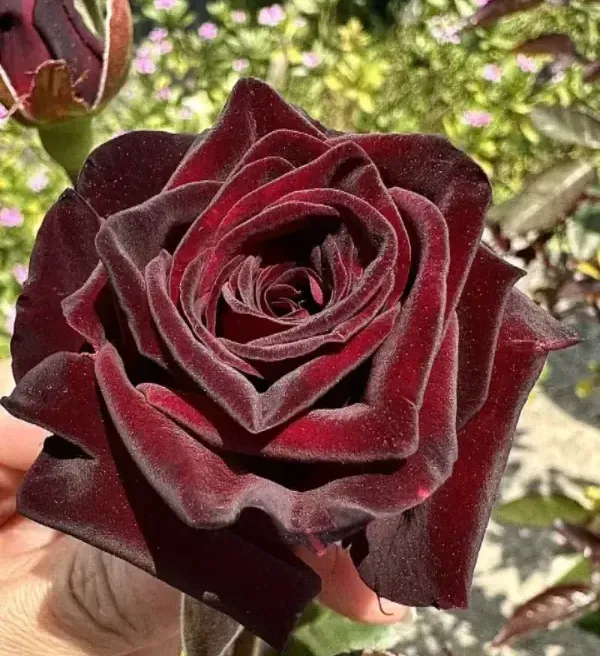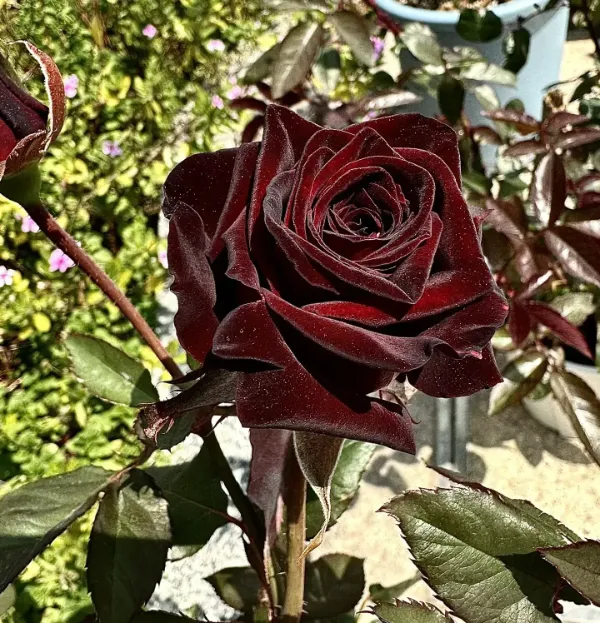 "Black Buck Rose" originates from Denmark.. It is a mixed tea rose. The flower color is very deep dark red and looks a little black. Known as the black widow among red roses, its thick velvet feel makes it feel like a flower in a movie, with a retro atmosphere.