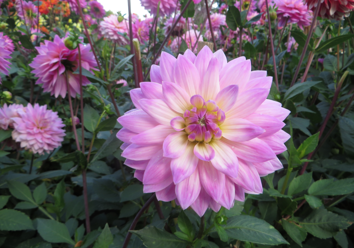 Dahlias prefer cooler climates, the largest flower in late September, the most brilliant, the height, but the impatience cream, immediately after frost withered leaf.