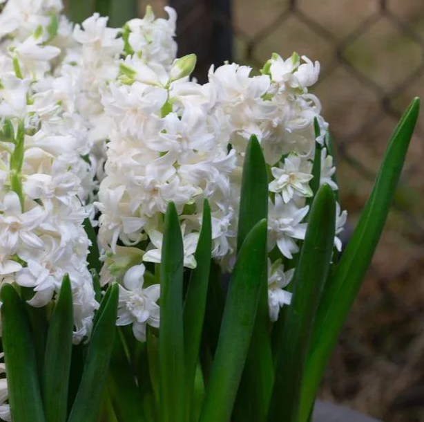 The small stature of Hyacinth 'Snow Crystal', rarely taller than 20cm, gives it added dainty charm, and makes it great for a container display. 🫧🏘️
