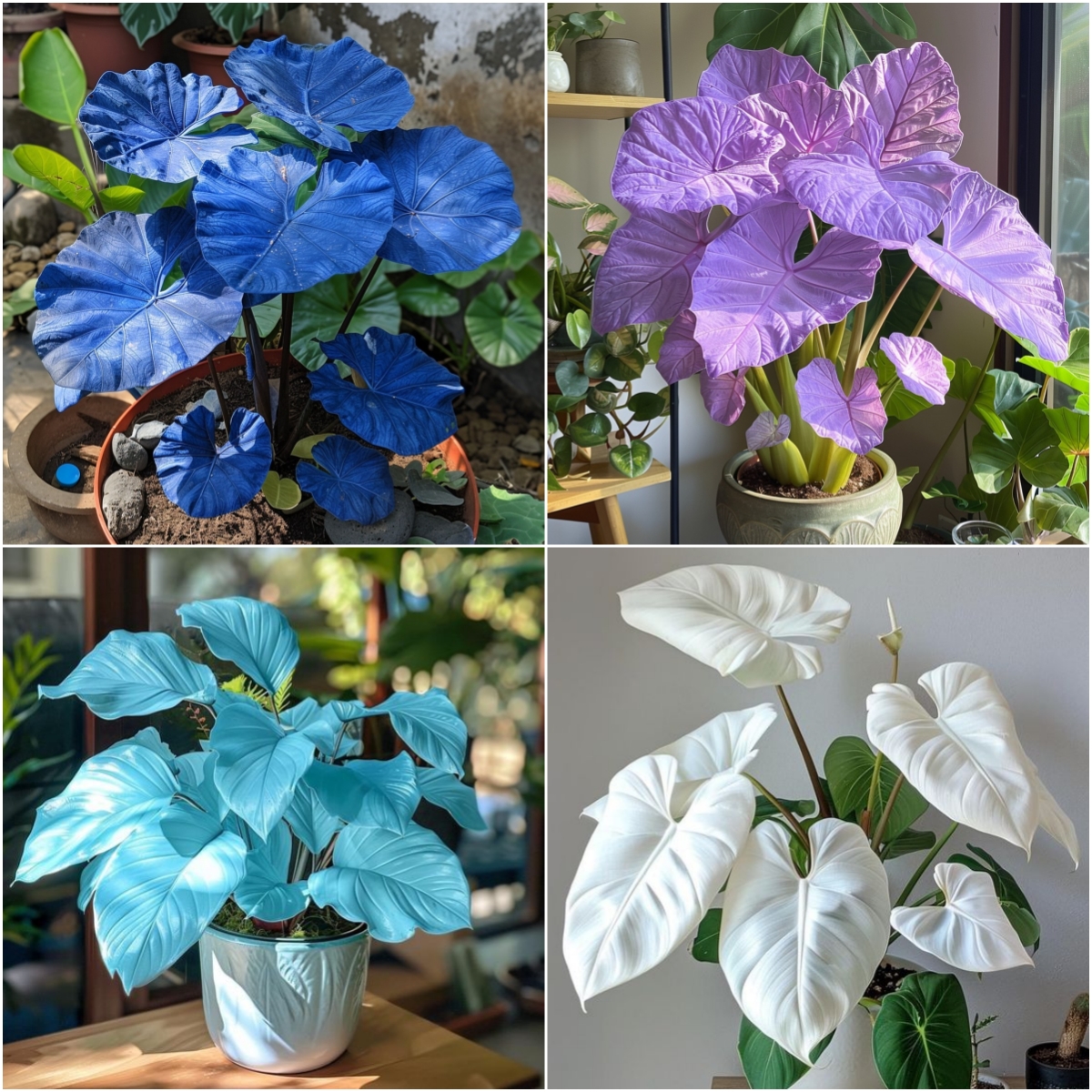 Colour caladiums are known for their charming heart-shaped leaves and vibrant hues. Available in a variety of colors – including dark blue, purple, light blue, and white – these plants are sure to be the focal point of your space.