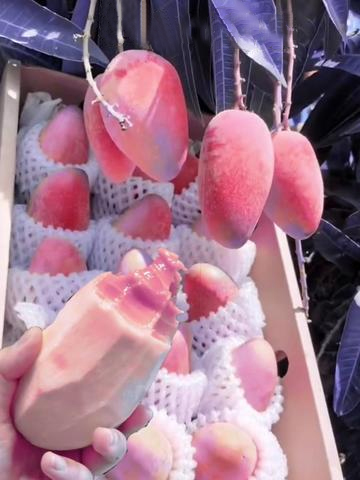 🥭🥭The pink mango fruit is oval in shape, with a smooth surface, richly colored skin, fresh and juicy flesh, and a sweet taste.