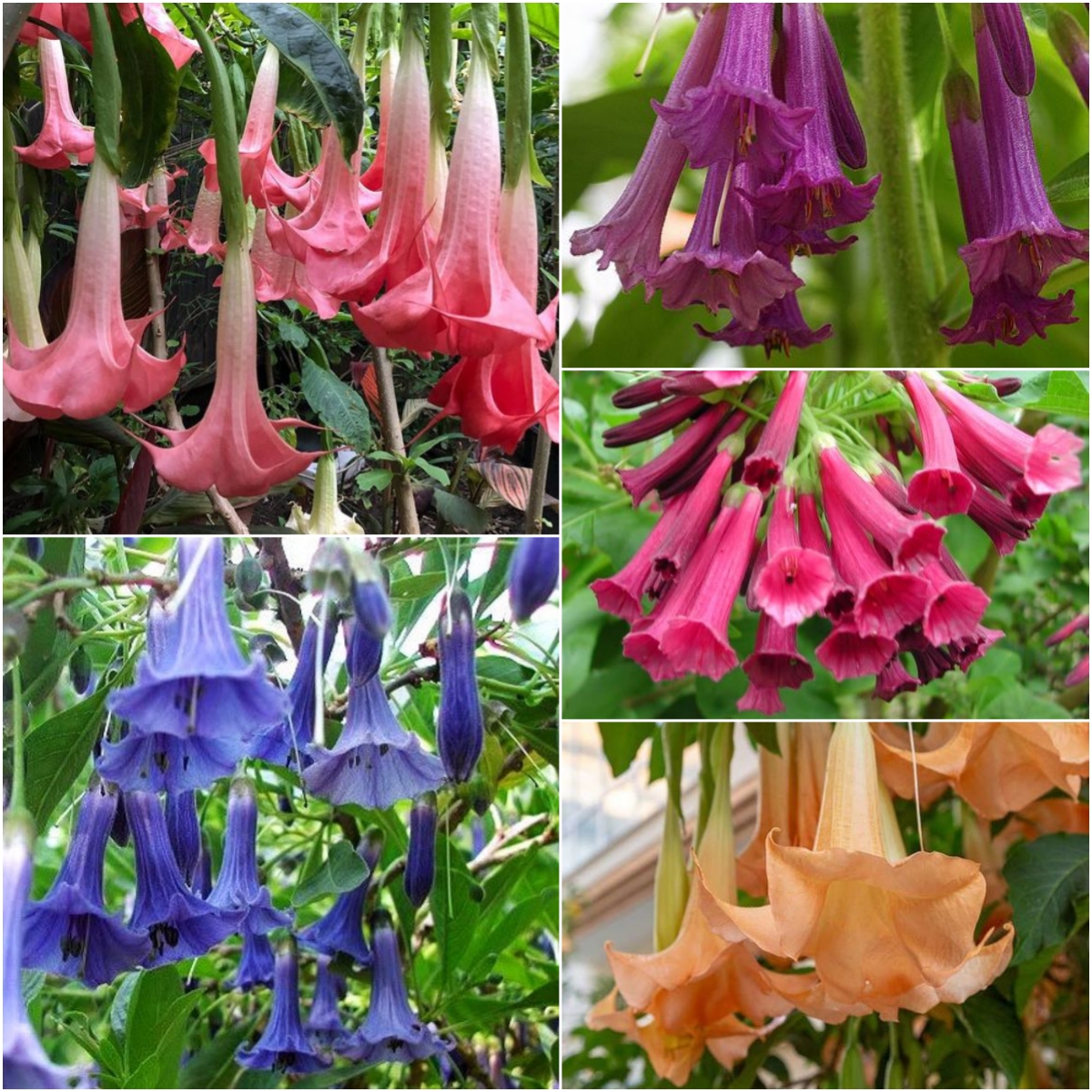 Large, trumpet-shaped flowers in enchanting shades of white, purple, and yellow.