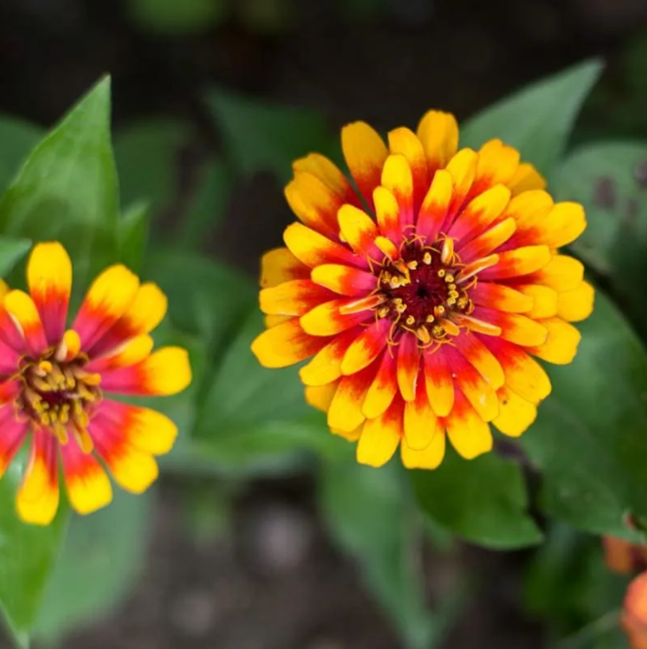 Zinnia is an annual herb. The stems are erect, 30~100 cm tall, hispid or hirsute. Leaves broadly ovoid or oblong-elliptic, 5~10 centimeters long, 2.5~5 centimeters wide, base slightly cordate clasping the stem, both surfaces scabrous, densely hispidulous below, base out of three veins.