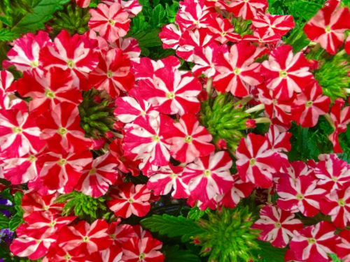 鮮やかな赤と白のストライプが特徴の宿根バーベナ【ミータン】ホームセンターで